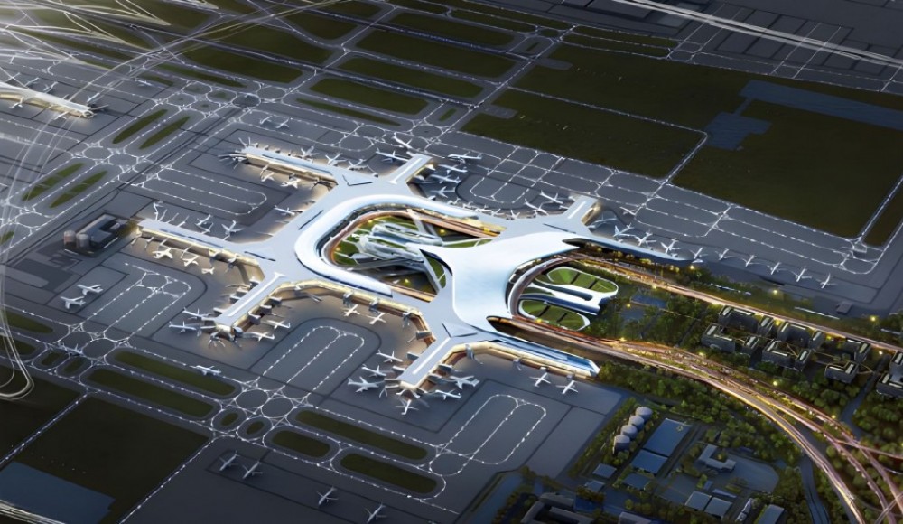 交通中心位于T1航站樓東側(cè),總面積約80萬平方米,自東向西。自上而下將機場航站樓、磁浮、高鐵、地鐵、長途車站、公交站、出租車上客點及社會停車庫等交通設(shè)施集約布局于一體。工程地下室抗拔樁采用機械連接竹節(jié)樁7萬米。